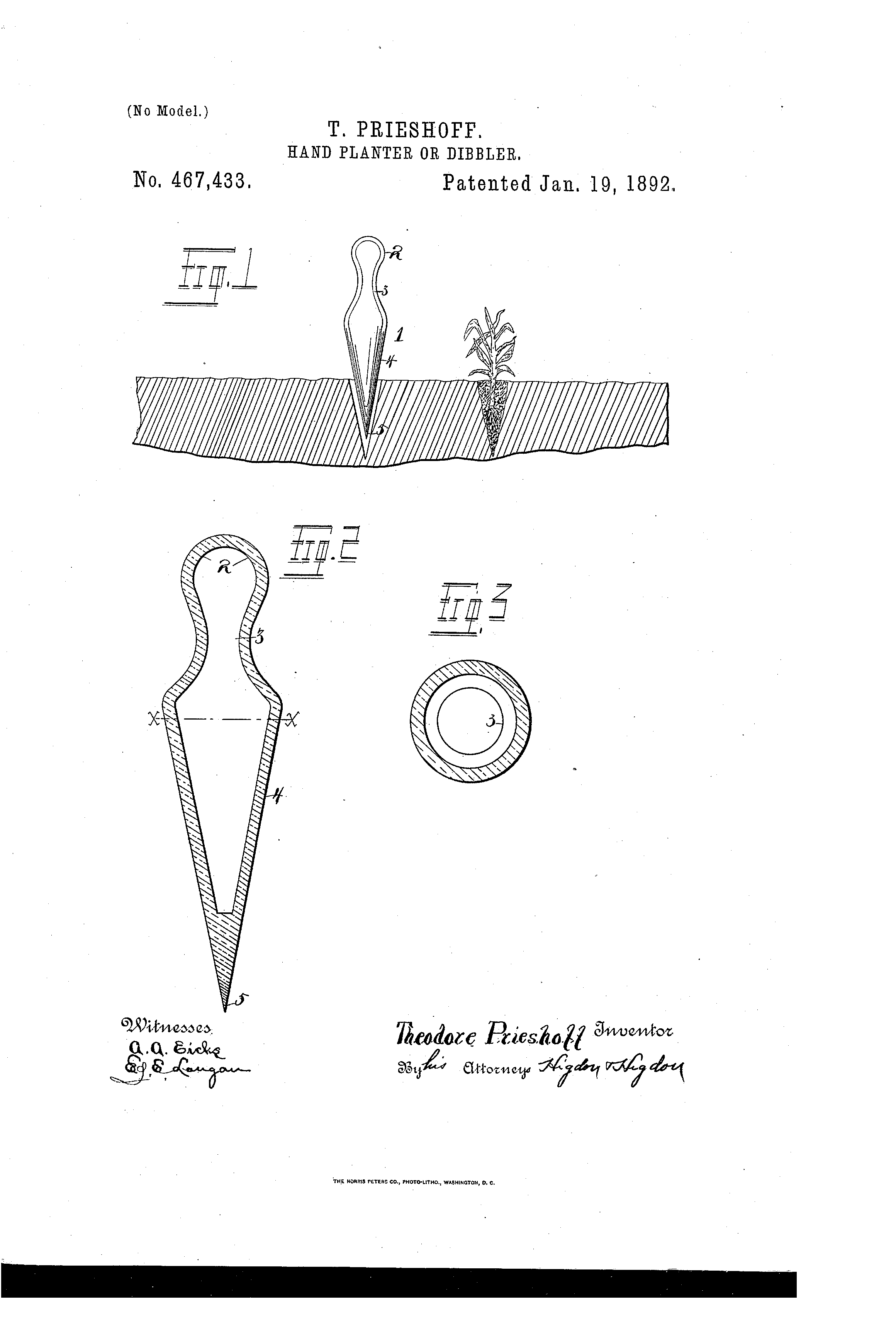 This unique planting tool (date unknown) was hand-hewn from an unidentified wood. Typically, garden dibblers (also known as dibbers or dibbles), which were